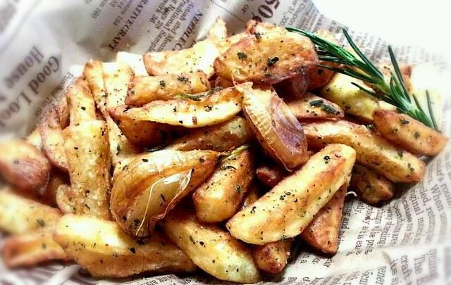 ポテトフライを数種類の香草で味付けしたお酒にぴったりな一品。