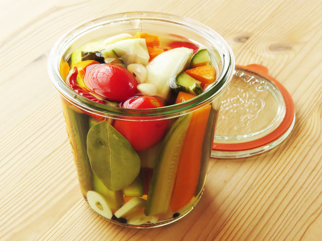 旬の色とりどりの野菜を自家製のピクルスにしました。すっきりとした酸味が人気です。